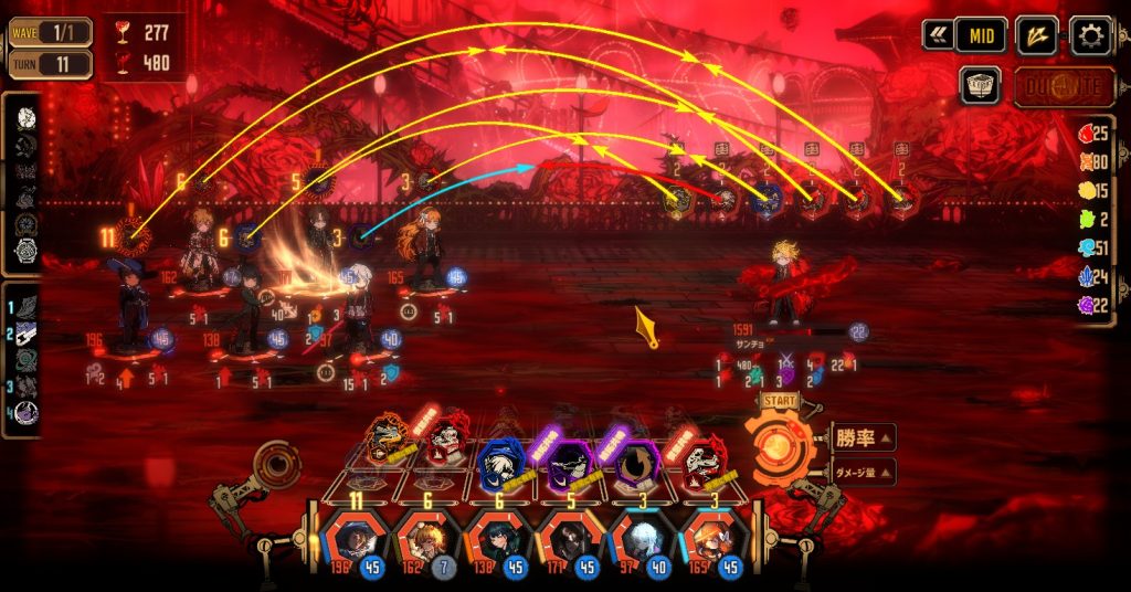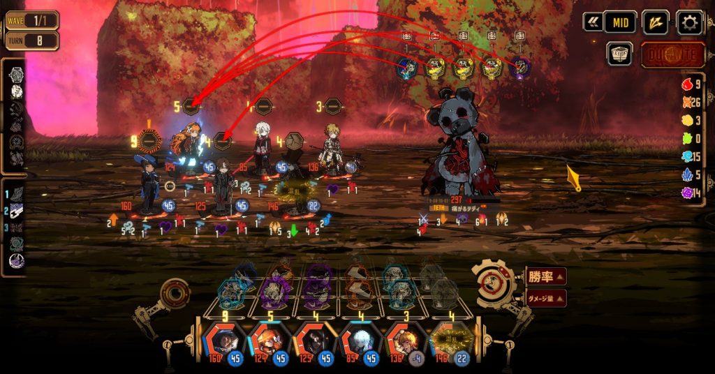 - 長期戦になるほど敵が強くなるので、短期決戦になるように動くこと
