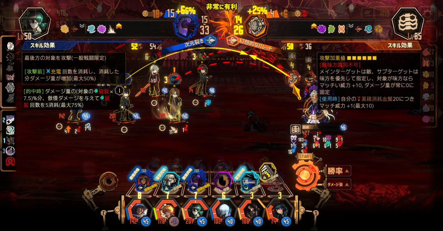 →できれば毎ターン確実に数を減らしていくのが重要 - 棘や出血などの固定ダメージが痛いので、長期戦になるほど人格の体力を消耗する