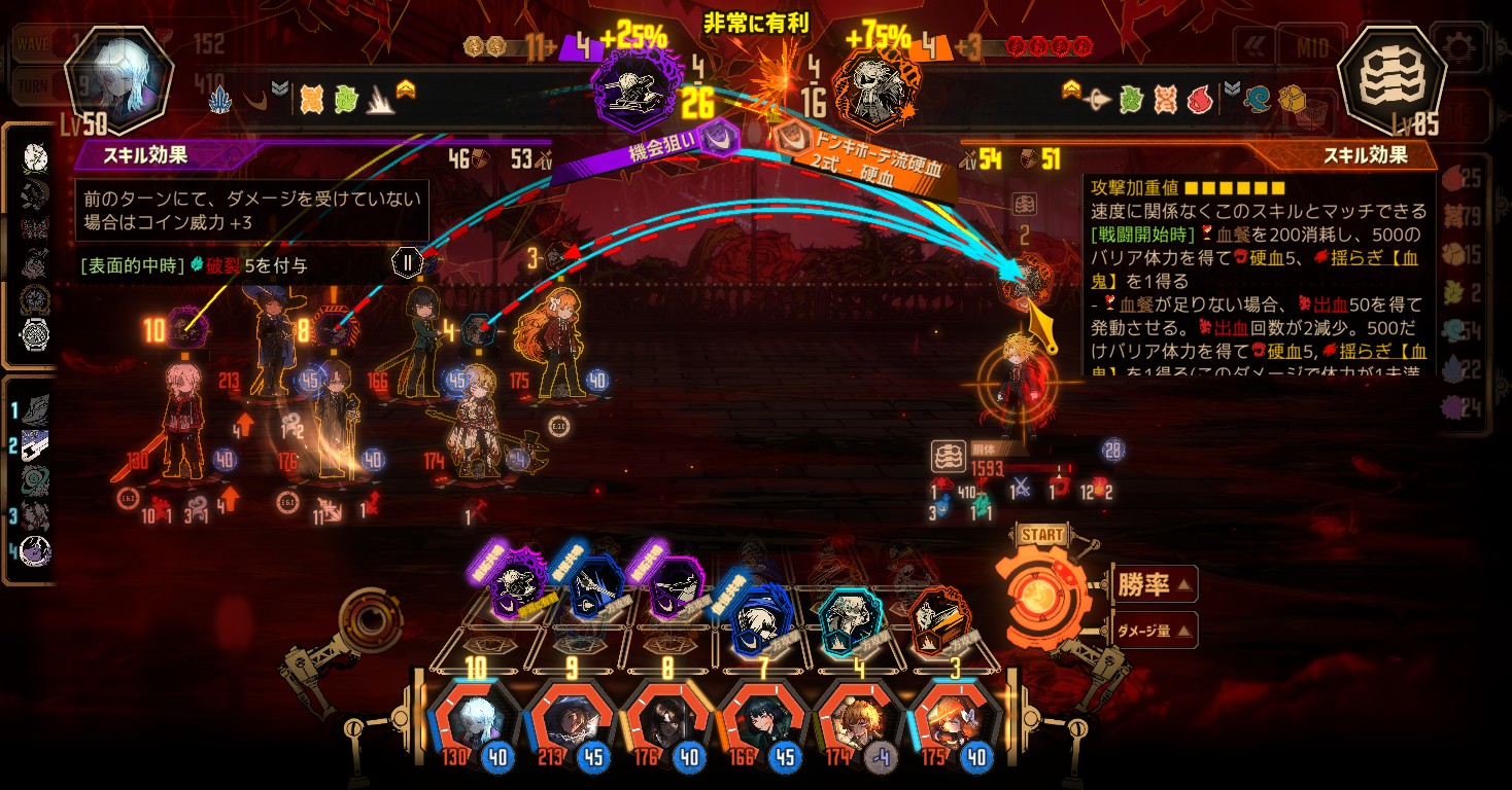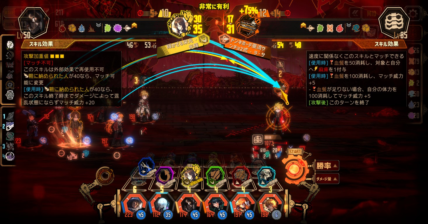 - 2体とも血餐やパッシブ効果で攻撃レベルが上昇して、マッチ威力が上がってくる