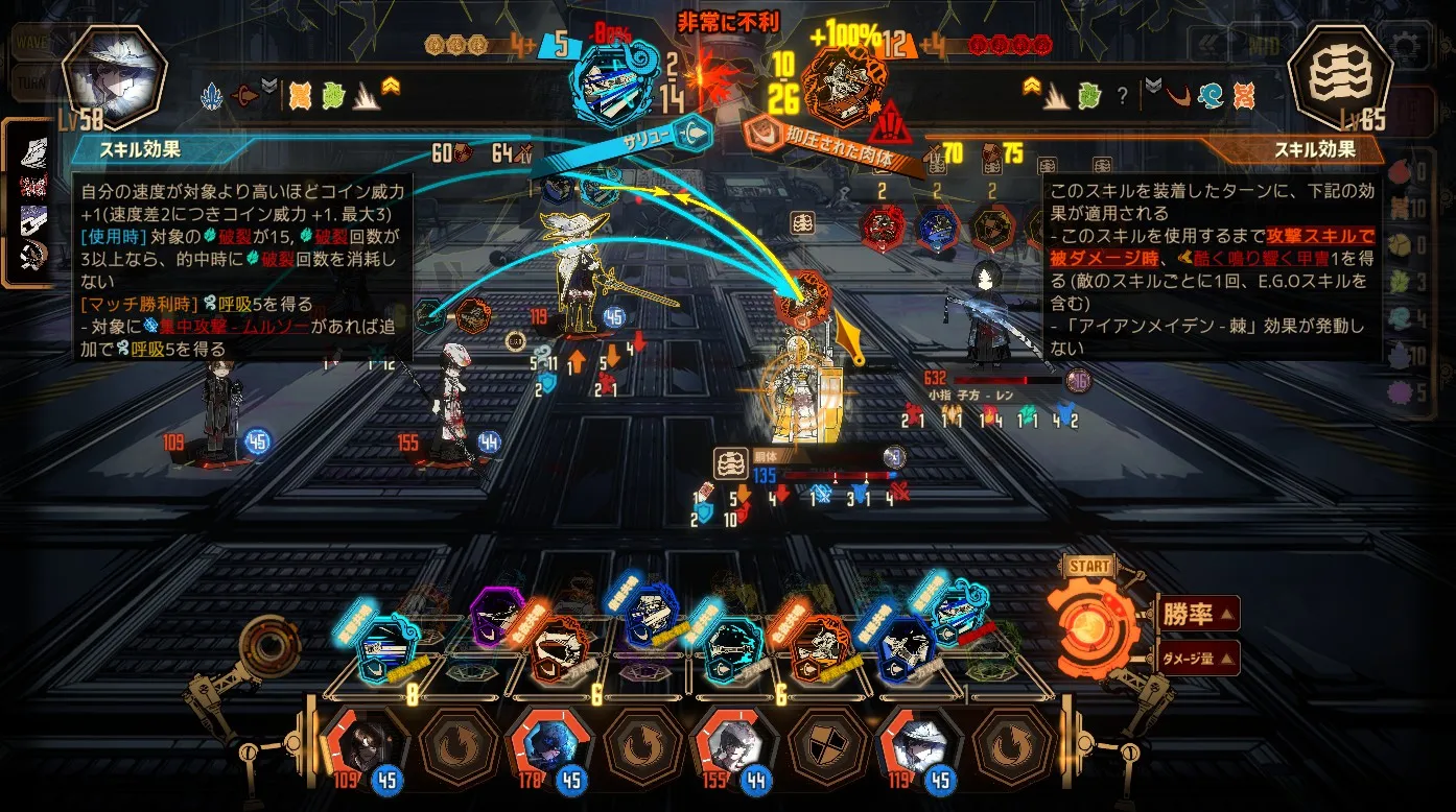 レンの攻撃スキルとマッチする囚人がいる場合、レンの回避スロットのターゲットになっているなら、他の囚人が防御相殺した方がダメージを通しやすくなります。