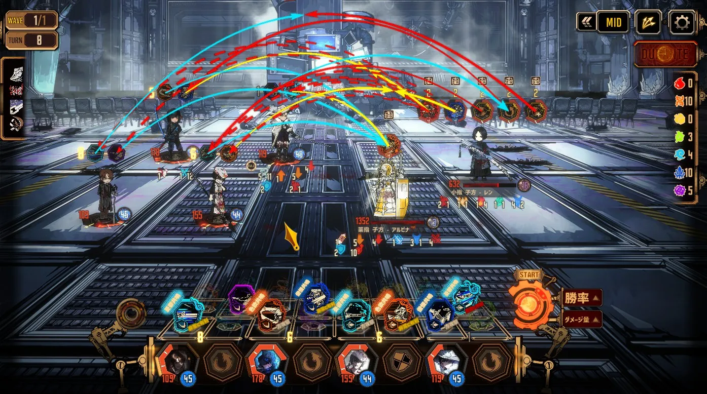 そのため、アルビナが来てから2ターン目に他人の鎖を撃っておくとこのターンの対処が楽になります。(多分スキル自体は3ターン目ごとに使う)