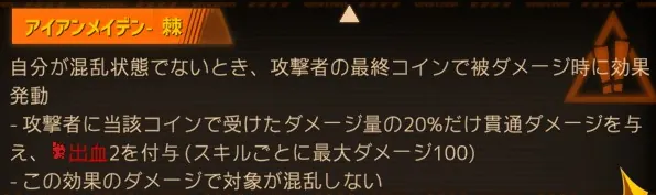 スキル効果は「アイアン・メイデン- 棘」効果で敵への与ダメージ量が20倍になるというものです。