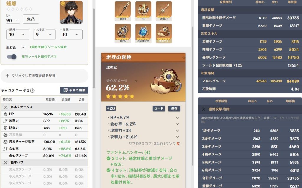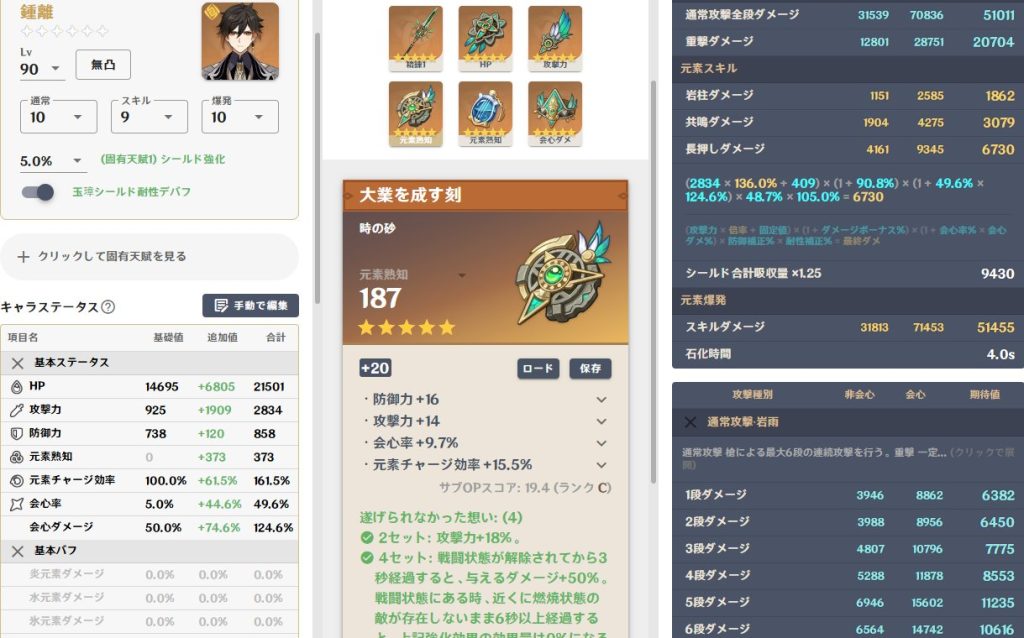 - 4月14日|原神・鍾離のアタッカーキャリービルド思案:余響型完成
