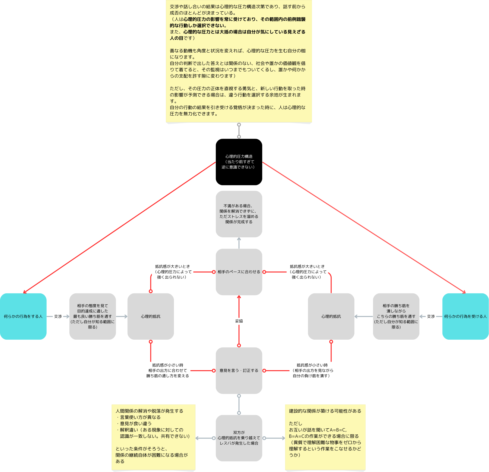 このとき心理的な圧力関係が拮抗するため、俯瞰して状況を整理する癖がない場合は、なかなかその関係は清算できません。良い関係なら問題ありませんが、大体悪いことの方が多いんじゃないかなと思います)