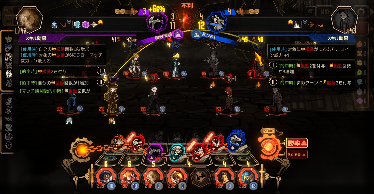 単純化すると戦闘で勝つには、コインのオモテ面をより多く出せる状態で戦うことが重要になります。
