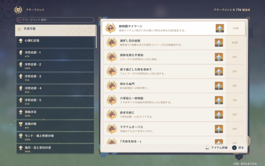 - 原神:5周年WEBイベント「心をたどる旅」、アチーブメント取得数