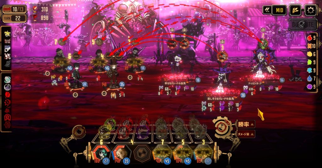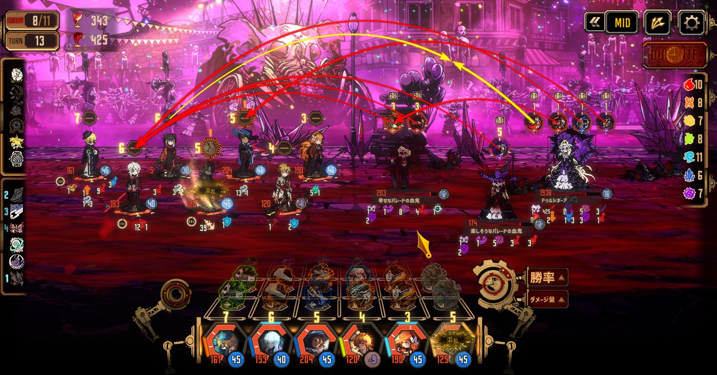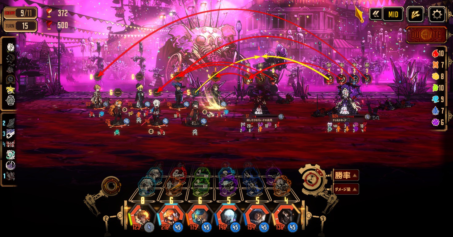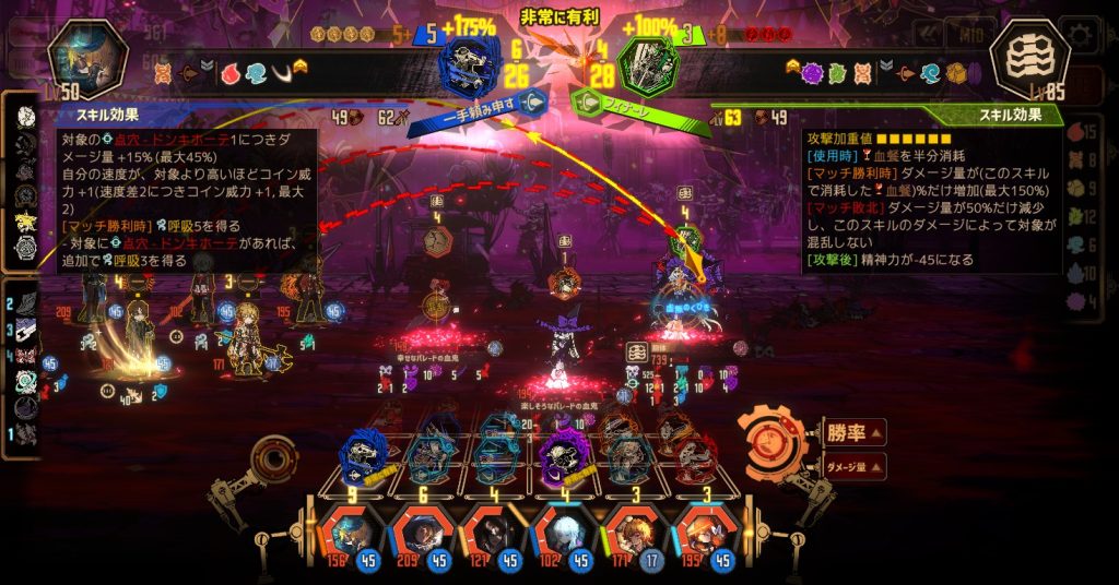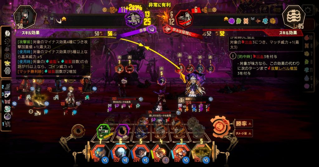 - スキルの攻撃レベルが50の血鬼に向けられる「歩みは優雅に…」のマッチを味方が取ってバフを阻止する