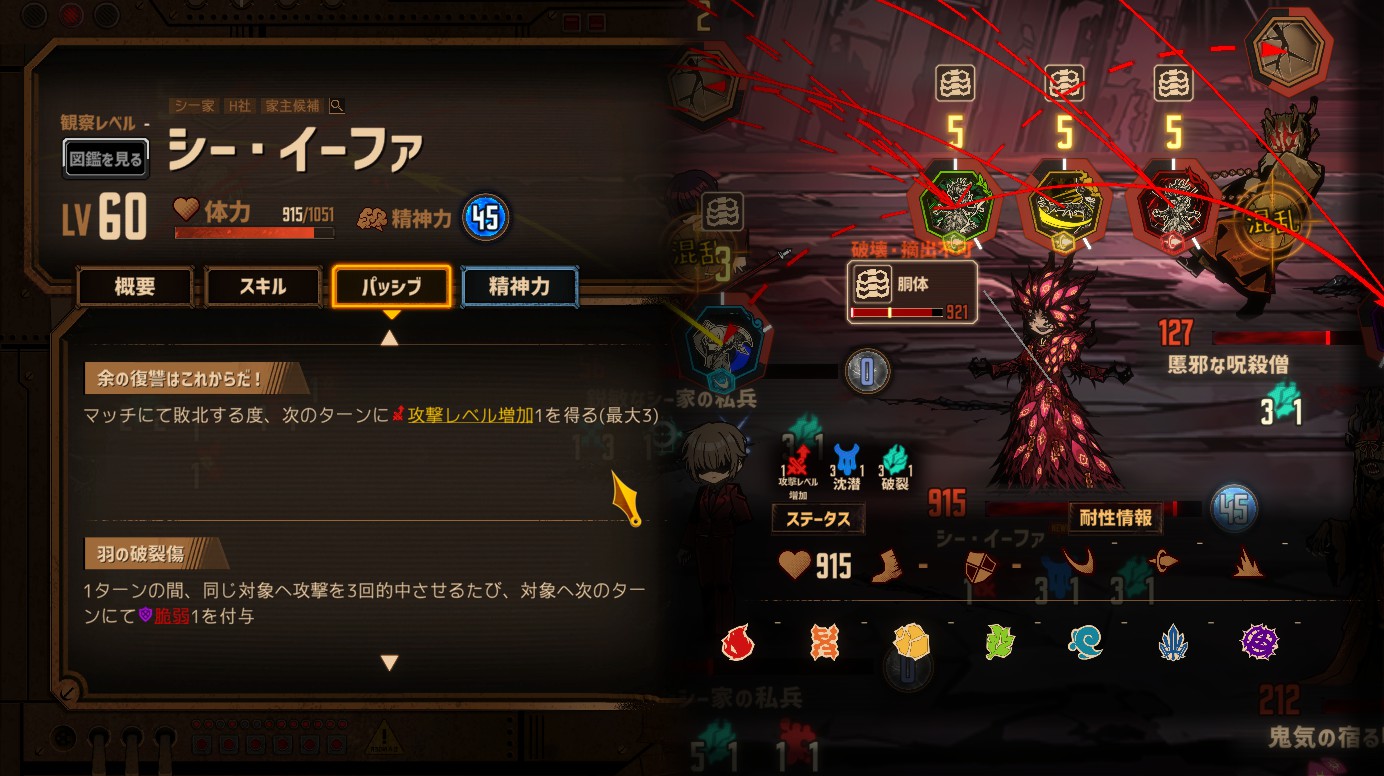 →味方の精神力が上がりきってないと、単コインの上振れ最大値で負ける可能性がある - 敵の速度が高めのためマッチ制御が難しい(回避がない・マッチ不得意人格だと辛い)