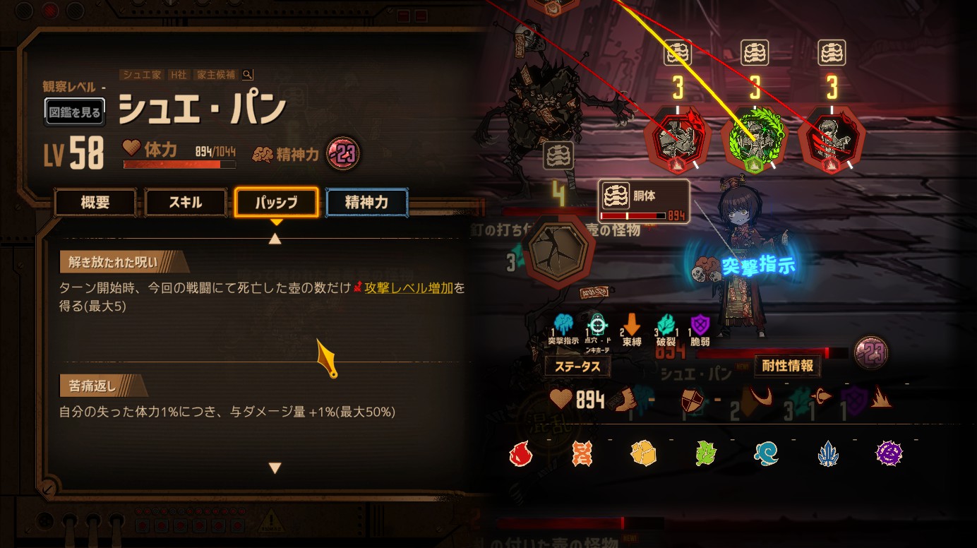 (パッシブ効果の攻撃レベル上昇は、マッチ勝利した時点でカウントされる) - ボスの攻撃が3回命中した味方に脆弱が1つく
