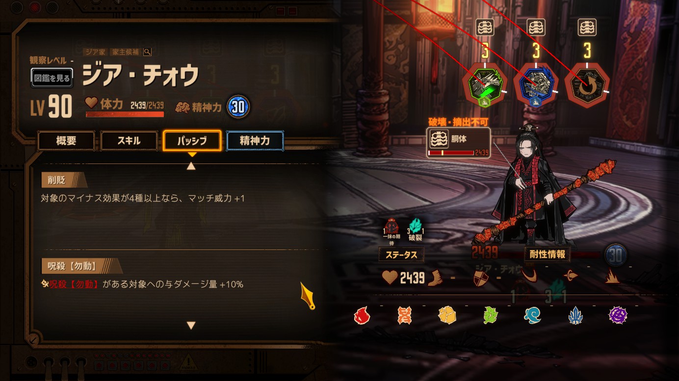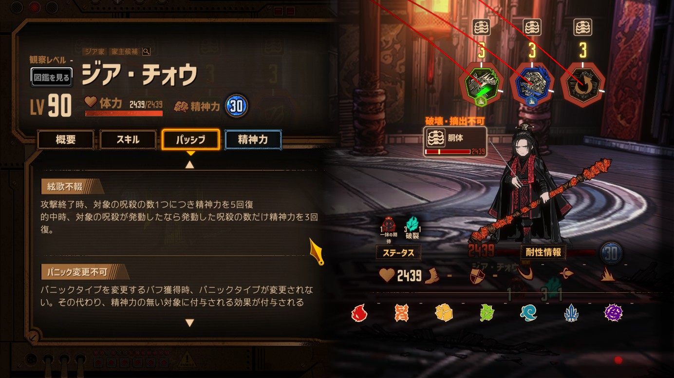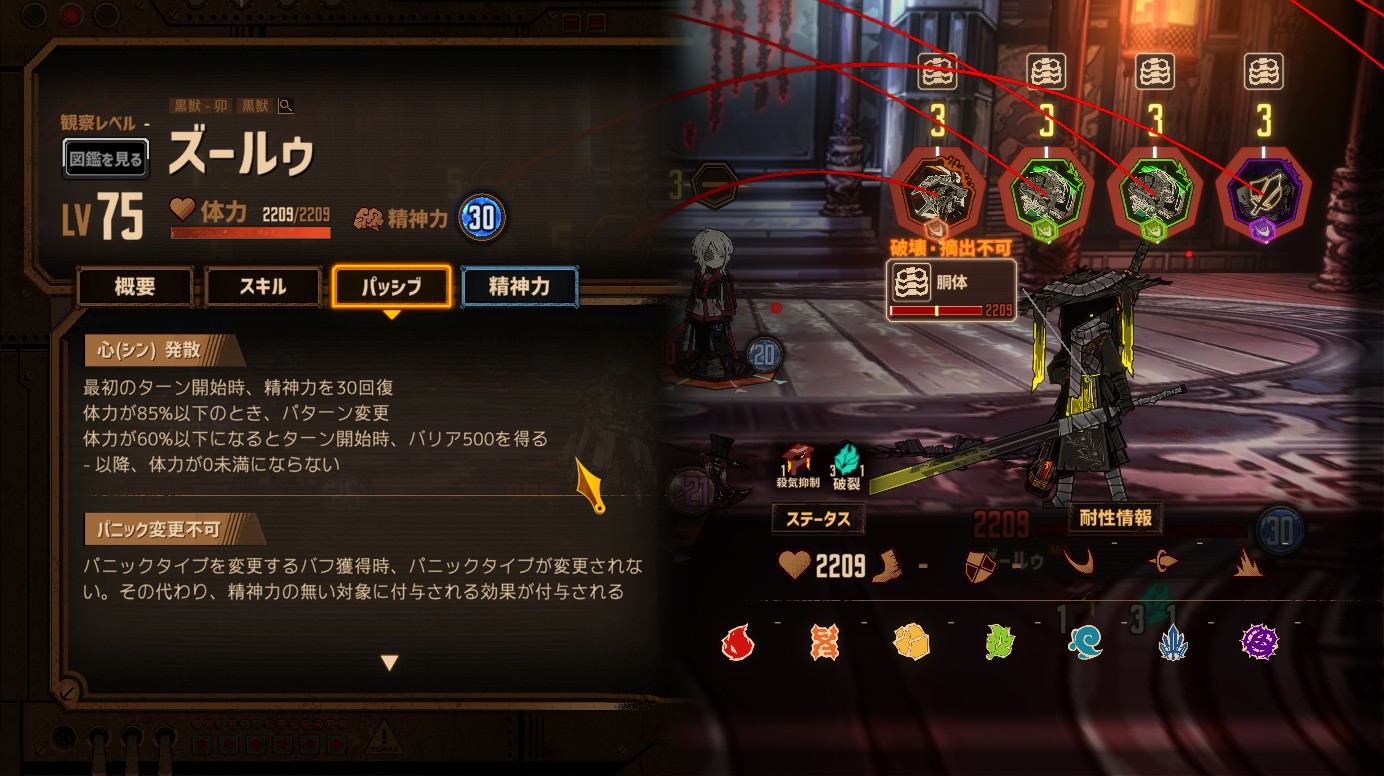 - 打撃半減(対チォウ)、斬撃半減(対ズールゥ)の人格