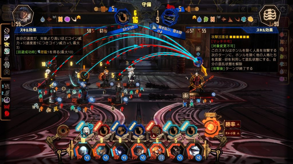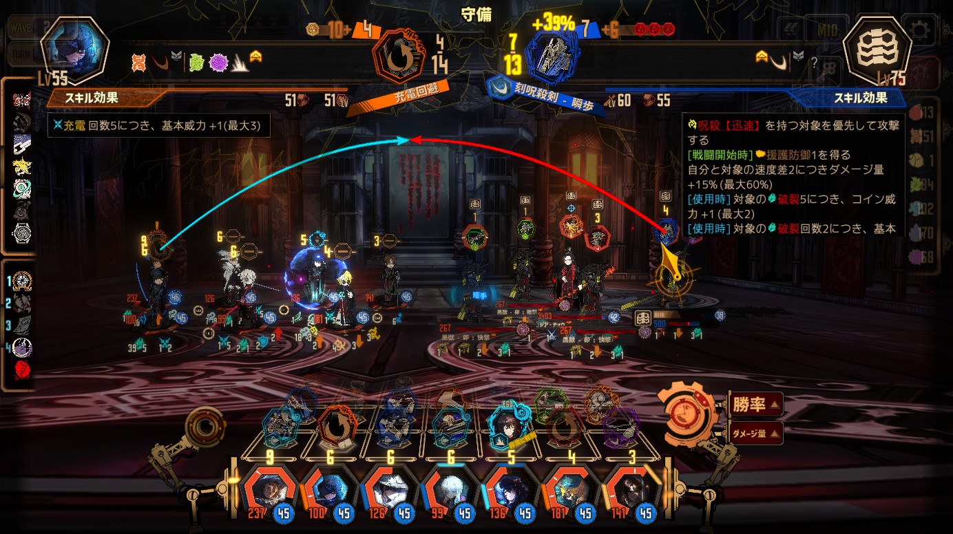 ・ズールゥのスキル「刻呪殺剣 – 瞬歩」は、威力が高いので回避か高威力スキルでマッチする