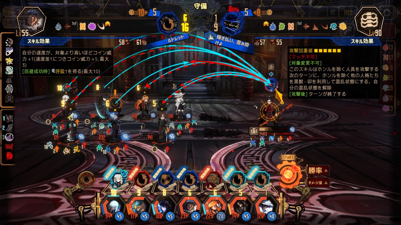 →敵の速度が高いので、速度の高い人格がいるとカバーやマッチ制御がしやすい - マッチ威力最大値16以上出せるスキルがある人格
