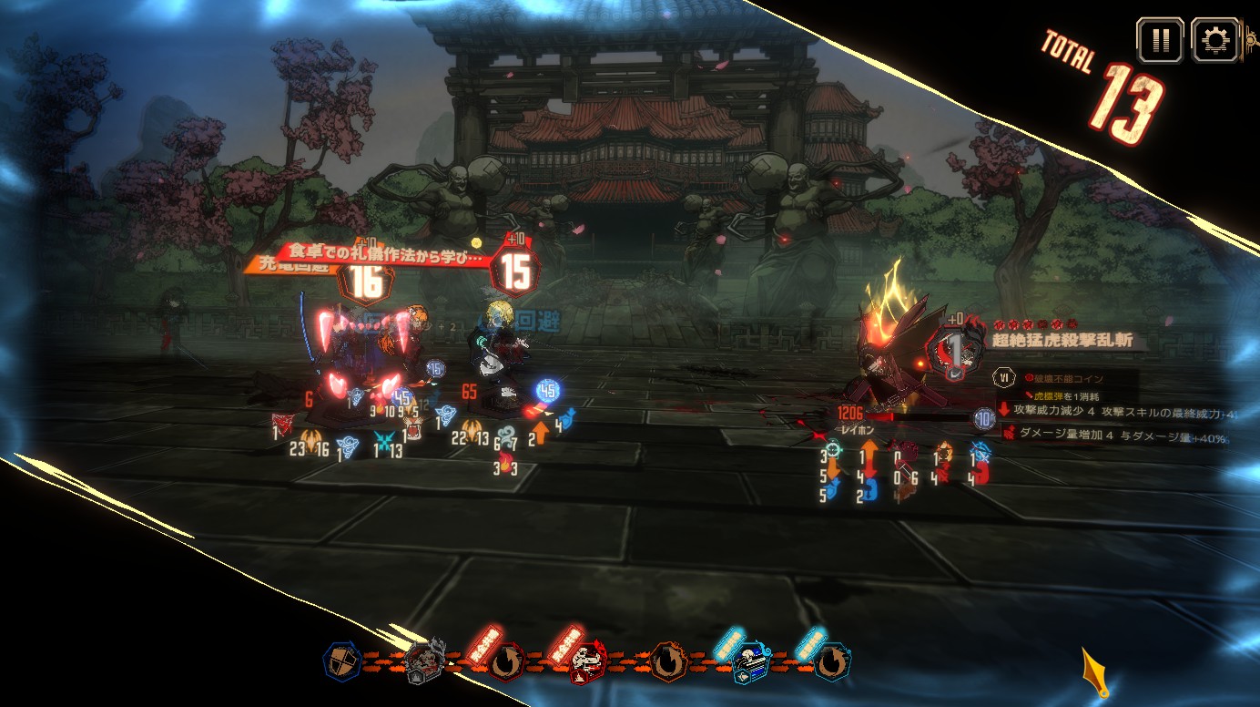 大技(快刀亂麻・超絶猛虎殺激乱斬)の使用を3ターン目ごとに繰り返すとわざわざ書いてあるので、それに合わせた対応を考えます。(主に他人の鎖使うタイミング)