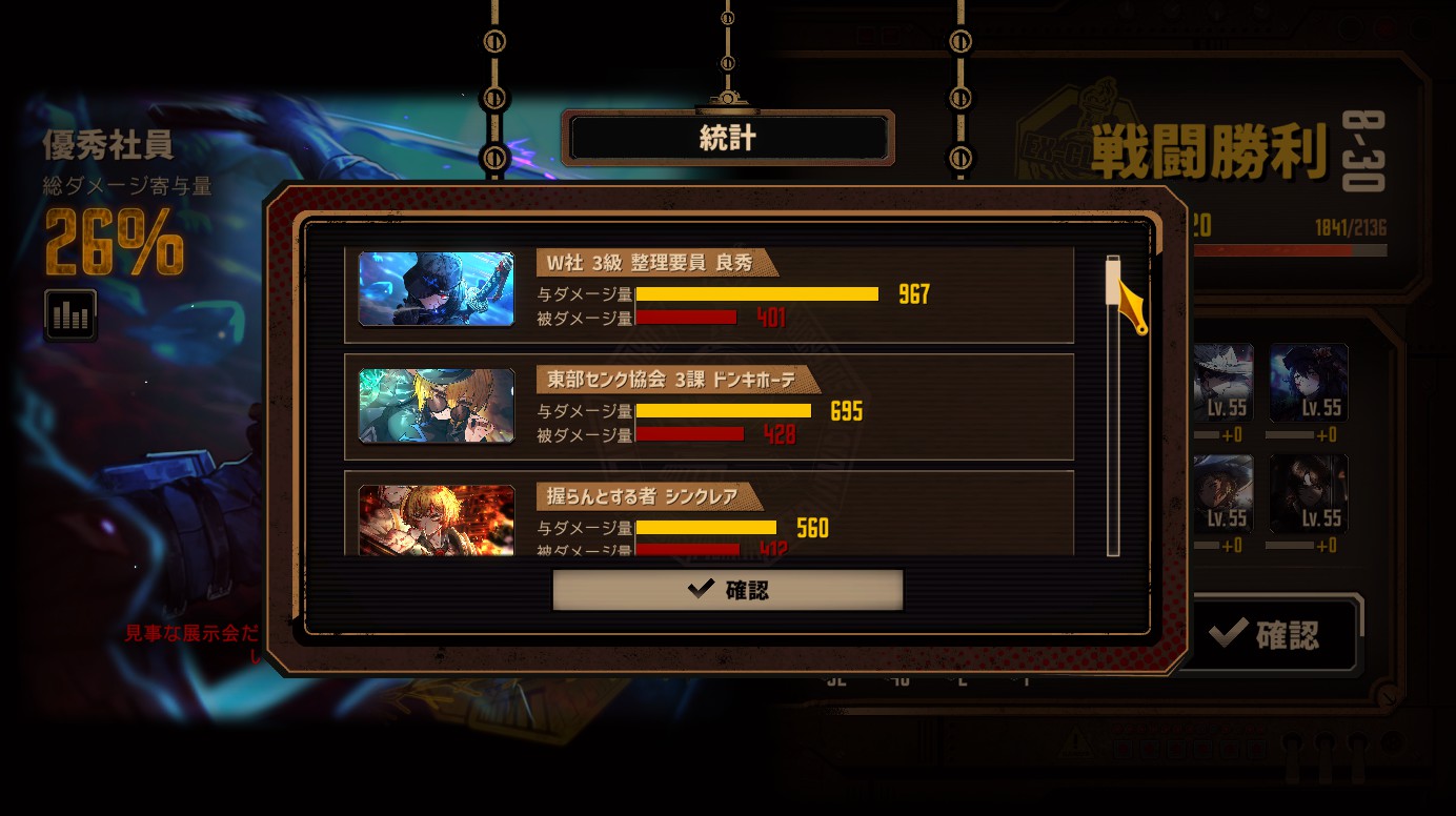 ちなみに、私は怠惰持ち人格の前半編成を忘れた上に、嫉妬資源のモロ被りで戦いました。
