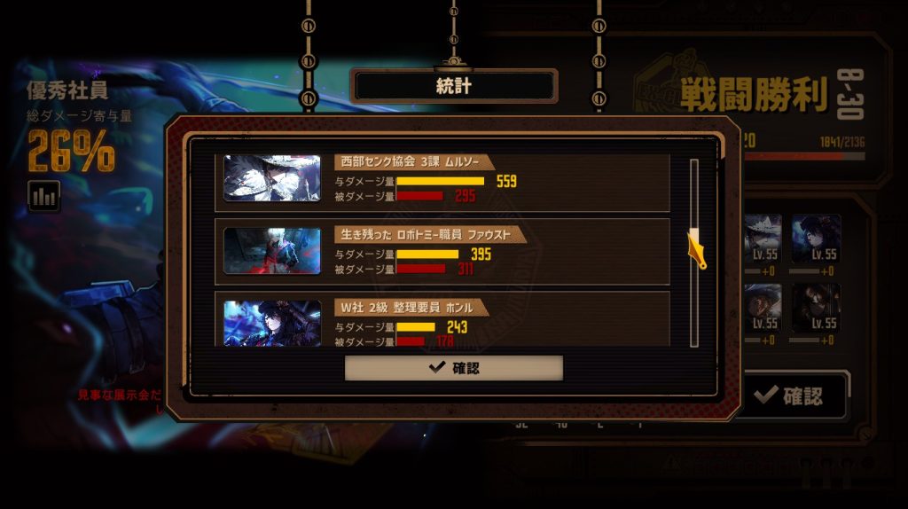 (星3人格が5人出撃するパーティで、大体15ターンぐらいかかった) - 火力・マッチ威力が足りていて、他人の鎖と回復EGOさえタイミングよく撃てれば勝てる