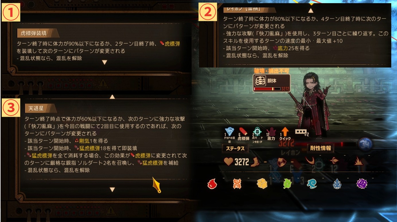 虎標弾は、レイホンの一部のスキルで消費します。パッシブ「親指幹部 カポIIII」を読む限りではなくなると火傷の威力・回数がつかなくなります。