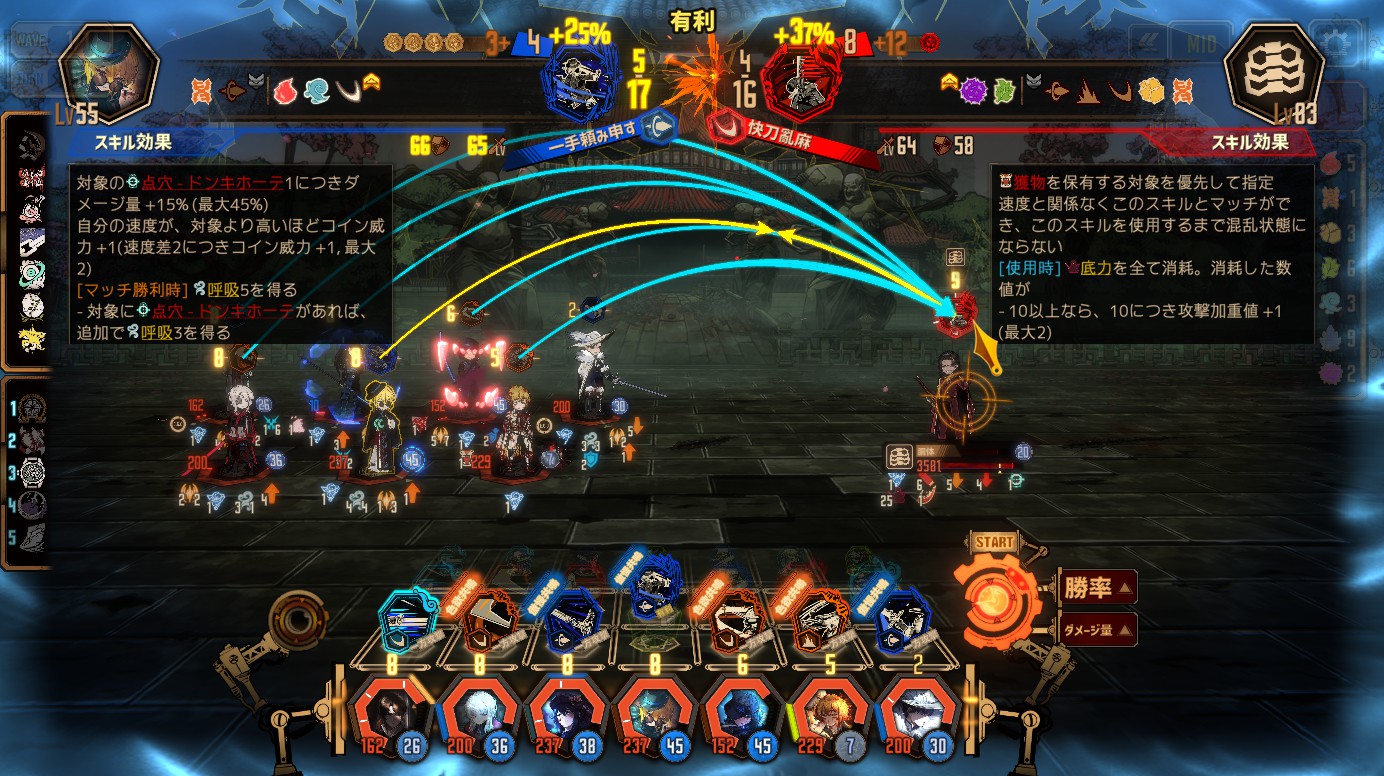 剛気の効果は、HPが減るほど火力が上がる、スキルが破壊不能コインに変わっていくと考えればいいです。