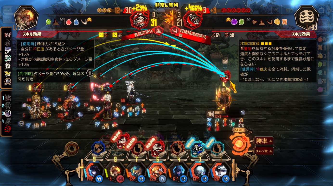 - 次のターンが大技のタイミングでボスの混乱区間を越えると、パッシブ効果で混乱から復帰してしまい、ダメージを稼ぐ機会が減る