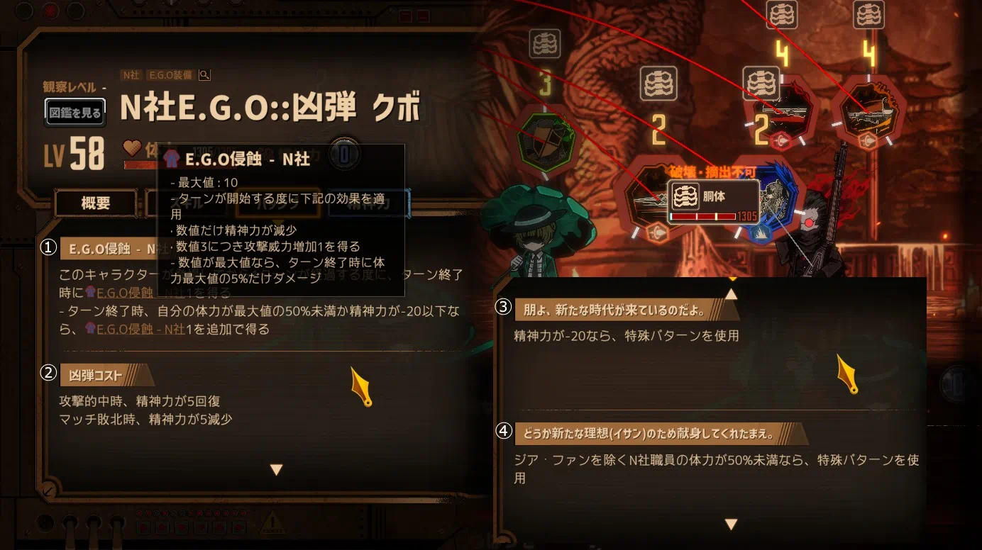 https://wikiwiki.jp/lcbwiki/敵性存在/ジア・ファン、クボ 「E.G.O侵蝕 – N社」パッシブ説明